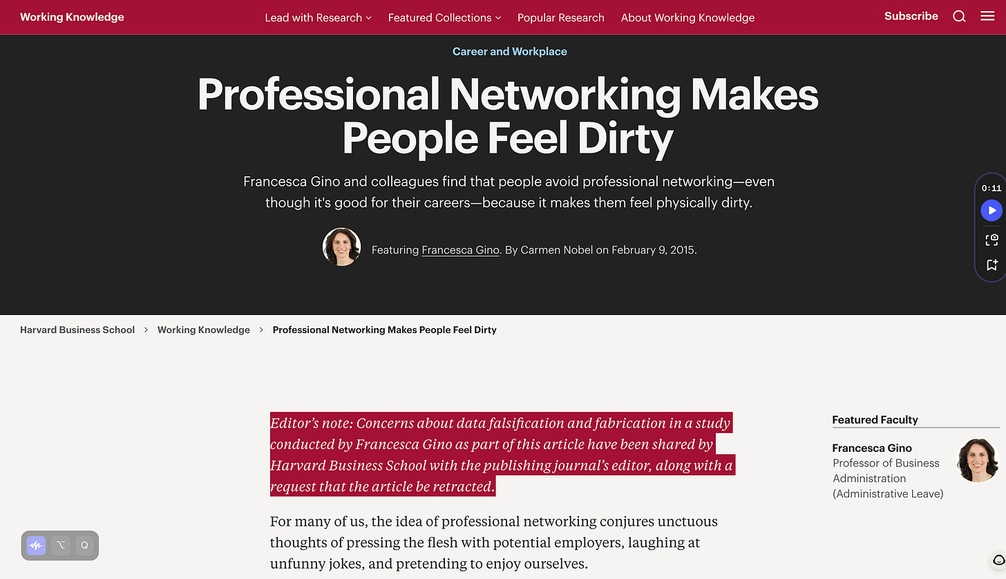 But as I began to look a bit more closely, I found that every link directly or indirectly cited the work of one researcher, Francesca Gino.