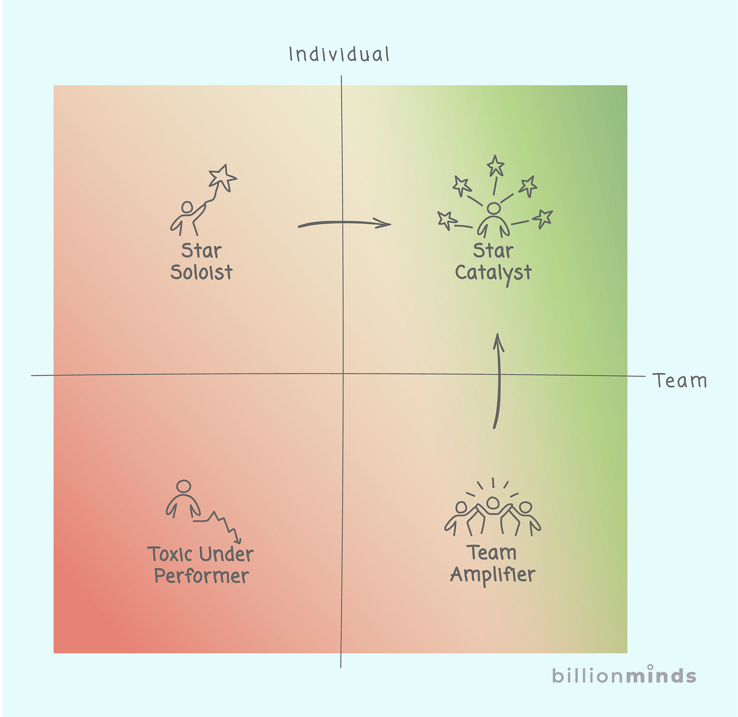 Third, but no less important are the intangibles that each person brings to their job - how they work as individuals and how they contribute more broadly to the team. As I discussed in They Look Great on Paper…Until They Join Your team - in the vast majority of work environments, we tend to focus disproportionately on the value employees bring as individuals and less on the value they bring to the team and organization, even though in most cases the latter is MORE important, and the combination of the two is priceless, as shown in this diagram, which we call the IVT (Individual vs Team) Matrix.